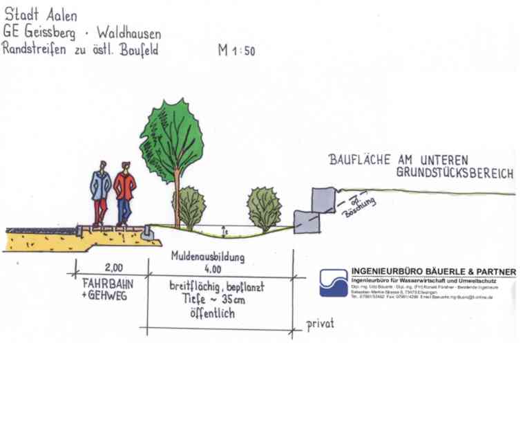 Für das Gewerbegebiet Geissberg war für das Gesamtgebiet (ca. 7 ha) eine Entwässerungskonzeption im modifizierten Mischsystem zu planen sowie die Verkehrsanlagen. Hierbei war die Lage in der Wasserschutzzone III zu beachten.